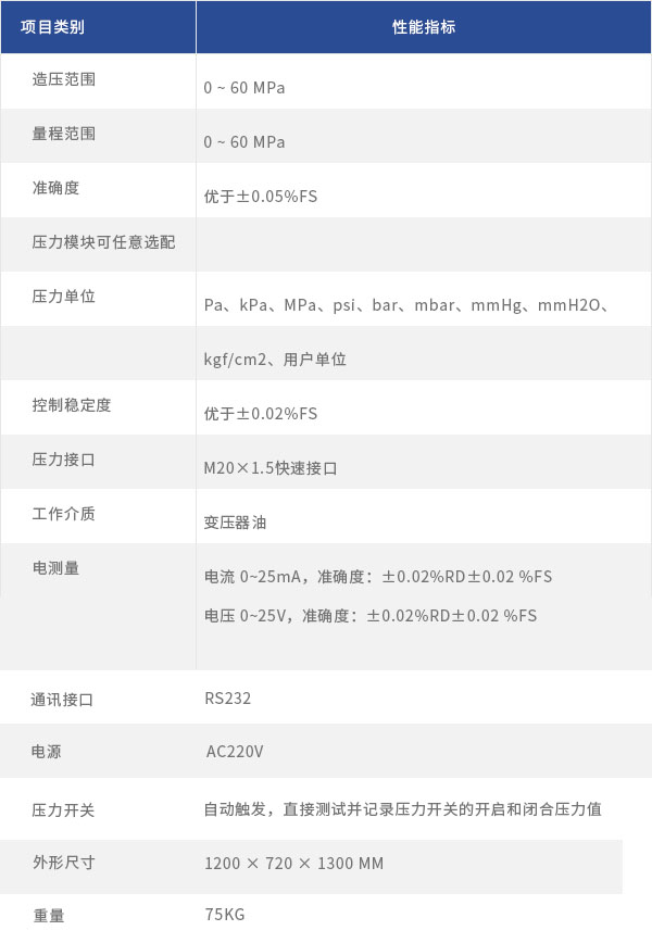 SP100H全自動液壓校驗裝置是我公司最新一代壓力校驗設備,由全自動造壓系統、精密壓力控制單元、高精度數字式壓力模塊和壓力校驗管理軟件組成,可實現對指針式普通(精密)壓力表、數字式壓力計、壓力變送器、壓力開關、壓力調節閥等壓力類儀表的全自動校驗,自動數據采集、計算和處理,生成符合國家檢定規程的校驗記錄及證書,適用于電力、石化、冶金、國防軍工、航空航天、制藥及計量部門等各種行業。